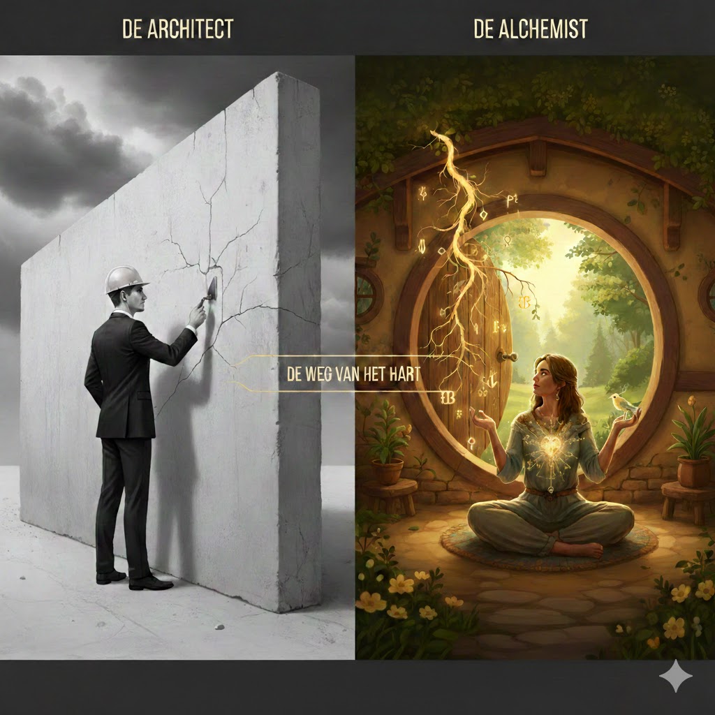Na de storm stond de Architect trillend bij het puin. De Alchemist liep naar hem toe, niet met een oordeel, maar met een uitgestoken hand.